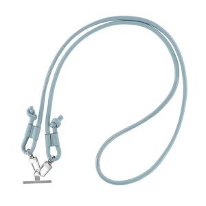 - ショルダーストラップ 多機能 ブルー 丸紐 レザー ステンレスシート 2WAY 肩掛け 首掛け