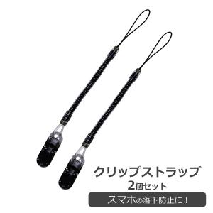- クリップストラップ 2個セット ブラック 伸びる コイル スパイラル スマホ 携帯 落下防止 紛失防止 定形外発送