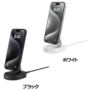- BELKIN BoostCharge Qi2 2-in-1 ワイヤレス充電スタンド 最大15W MagSafe対応 ブラック WIZ035DQBK