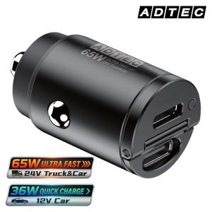 - ADTEC アドテック Power Delivery対応シガーソケット充電器/65W/Type-C 2ポート/ブラック ACPD-V065C2