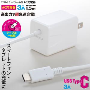 - AudioComm AC充電器 TypeCケーブル一体型 3A 1.5m|MAV-AC15W-W 01-7165 オーム電機