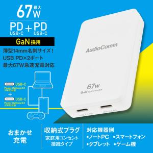 - AudioComm AC充電器 PD対応 TypeA+TypeC|MAV-AP2U30-W 01-7147 オーム電機