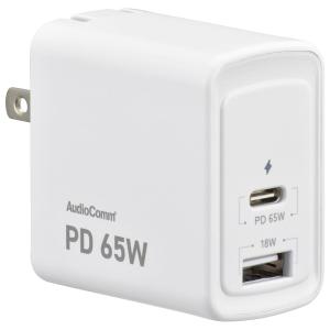 - AudioComm AC充電器 GaN採用 USB PD対応 65W|MAV-AUPD65-W 01-3798 オーム電機