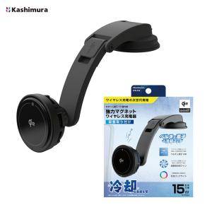 - マグネットワイヤレス充電器 Qi2 ブラック 吸盤取付 3重冷却構造 最大15W 360度角度調整 ローポジションタイプ Kashimura KW-53