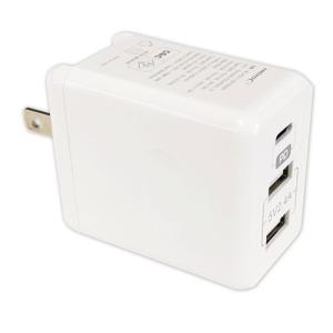 - USB充電器 PD65W GaN採用 Type-Cx2/Type-Ax1 スイングプラグ採用 ホワイト 取り寄せ商品