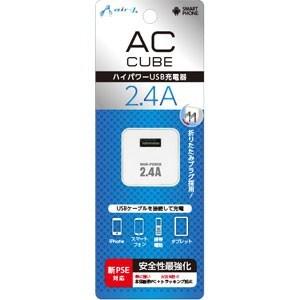 - エアージェイ 新PSE規格対応 2.4AハイパワーUSB充電器 AC CUBE(ホワイト) AKJ-SD24A WH