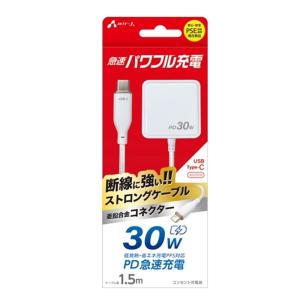 - エアージェイ PD30W対応 AC充電器 直付けストロングケーブル(Type-C 1.5m) AKJ-PD30STG WH