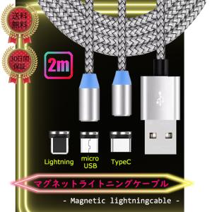 - マグネットケーブル ライトニング typec microusb iPhone 2m 2本セット おすすめ 急速充電 pd対応 安い 丈夫 強靭 cable