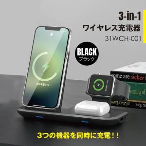- 期間限定セール 3in1ワイヤレス充電器 ブラック 急速充電 充電スタンド ワイヤレスチャージャー スマホアクセサリー スマホスタンド 置くだけ急速充電