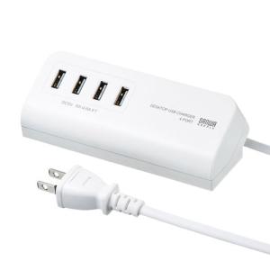 - マグネット付USB充電器 USB4ポート ホワイト 強力マグネットでスチール面にしっかり固定 サンワサプライ ACA-IP53W 送料無料 メーカー保証 新品