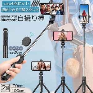 - 自撮り棒 セルカ棒 三脚付き じどり棒 Bluetooth 2サイズ 70cm 100cm 4個セット リモコン付き スマホ 自撮り 三脚スタン