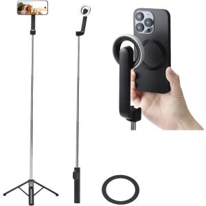 - エレコム スマホスタンド スマホ 三脚 マウント 最大長さ57cm 360度回転 折り畳み コンパクト シール付属 ブラック P-STMFBK