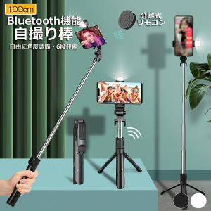 - 自撮り棒 セルカ棒 三脚付き じどり棒 Bluetooth 100cm リモコン付き スマホ 自撮り 三脚スタンド 6段階伸縮調節 360度