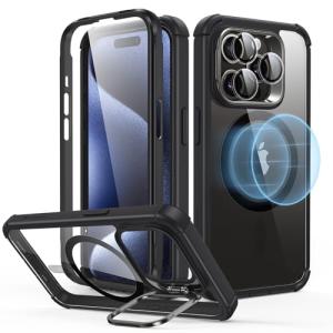 - ER ihone 15 roケース 全面耐衝撃 Maafeケース 米軍M規格超えの保護 ihone15ro用マグネットケース スタンド付き パー