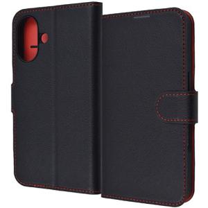 - ray-out(レイ・アウト) RTP46ELC1/BR iPhone16用 耐衝撃 マグネットベルト シンプル 手帳型レザーケース ブラック_レッド