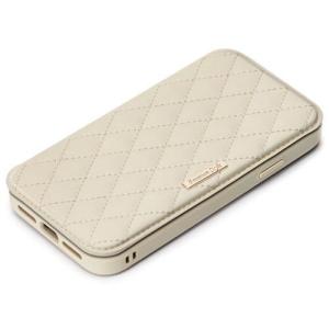 - PGA PG-21JGF04IV キルティング調アイボリー iPhone 13 mini用 手帳型カバー ガラスフリップケース