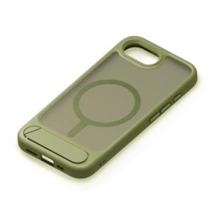 - PGA PG-25KMH11GR マットカーキー iPhone 16e用 MagSafe対応 スタンド付ハイブリッドケース 背面ケース