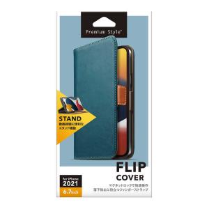 - PGA iPhone 13 Pro Max 6.7インチ フリップカバー ブルー Premium Style PG-21PFP01BL