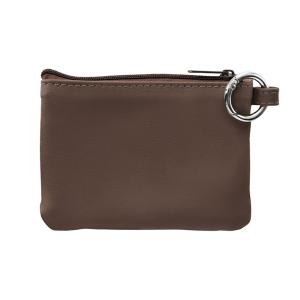 - ミニ ポーチ カラビナ付 ブラウン PU レザー 縦 8.5cm 横11cm 汎用 マルチポーチ ミニバッグ シンプル 無地 m1n1
