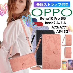 - OPPO Reno10 Pro 5G/Reno9 A/Reno7 A/A54 5G/A73/A77 ケース 手帳型 蝶柄 花柄 大人かわいい 肩掛け ショルダー ストラップ oppo reno9 a ケース 爆買
