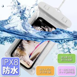- スマホ 防水ケース ホワイト IPX8防水スマートホンケース iPhone Android アンドロイド Xperia 対応 ストラップ付スマホショルダー Rk308
