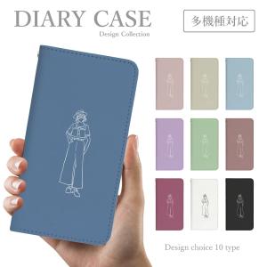 スマホケース Android One S5 手帳型 韓国 可愛い 女の子 イラスト 線画 落書き くすみカラー