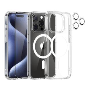 - ESR iPhone 15 Pro ケースセット 強化ガラスフィルム1枚 レンズフィル1組 の保護 黄ばみにくい 傷に強いMagSafeスマホケ