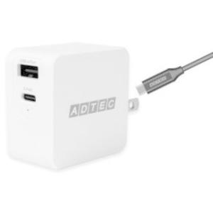 - 充電器 急速充電 ACアダプター USB Type-A 1ポート Type-C 1ポート 65W APD-A065AC-WH ホワイト ADTEC アドテック