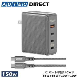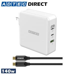 - アドテック PD3.1充電器 140W 3ポート(eMarker搭載240W Type-Cケーブル付属)(USB-Cx2+USB-A)(GaN/窒化ガリウム )ホワイト APD-V140AC2-wC24-WH