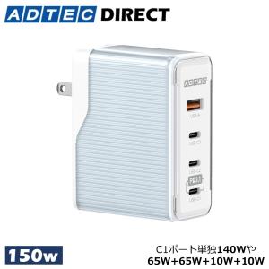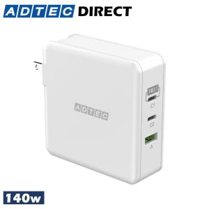 - アドテック PD3.1充電器 140W 3ポート(USB-Cx2+USB-A)(GaN/窒化ガリウム )ホワイト APD-V140AC2-WH