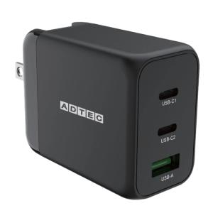 - ADTEC アドテック PD充電器 65W 2ポート USB-C+USB-A PD3.0/GaN (窒化ガリウム) ブラック APD-V065AC-BK