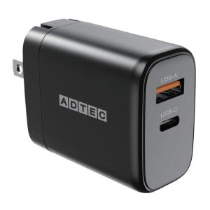 - 充電器 急速充電 ACアダプター USB Type-A 1ポート Type-C 1ポート 65W APD-A065AC-BK ブラック ADTEC アドテック