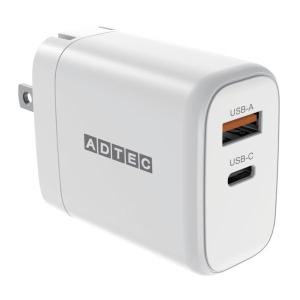- ADTEC アドテック PD充電器 65W 2ポート USB-C+USB-A PD3.0/GaN (窒化ガリウム) ホワイト APD-V065AC-WH