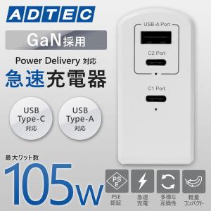 - 充電器 急速充電 ACアダプター USB Type-A 1ポート Type-C 2ポート 105W APD-A105AC2-WH ホワイト ADTEC アドテック