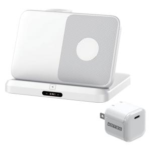 - ADTEC アドテック 卓上 ワイヤレス充電スタンド 3in1 スマホ・イヤホン・ウォッチ&PD充電器 33Wセット AWPD-V015WEW/AS-w33W