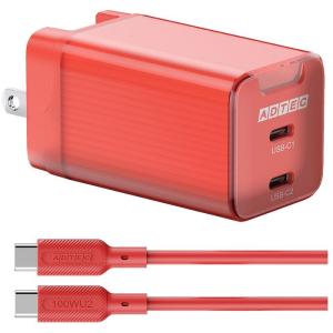 - PD充電器 65W C2 赤 ソフトU2ケーブル スマホ タブレット PC 周辺機器 ADTEC APD-V065C2-RD-SC10U2