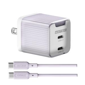 - ADTEC アドテック 45W出力対応PD充電器 Type-C×2ポート シリコン素材ケーブル付き APD-V045C2-PU-SC10U2 パープル