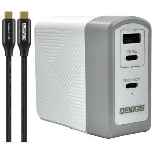 - ADTEC アドテック Type-Cケーブル(1m)セット 合計150W PD3.1 単独140W PD充電器 APD-V150AC3-BK-CU4G3 ブラック