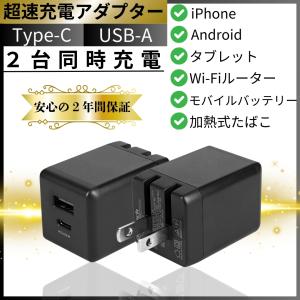 - ACアダプター 充電器 スマホ パソコン 65W 急速充電 コンパクト 2ポート タイプc USB PD対応 薄型 type-c usb GaN採用