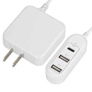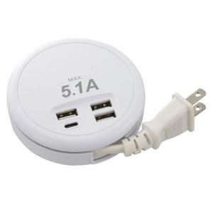 - オーム電機 USB ACチャージャー TypeA×3+TypeC 45cm コード巻取式 SMP-U3C51E3-W