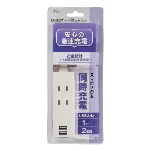 - OHM オーム電機 USBポート付安全タップ2個口 1m HS-TU21PBT-W(2510814)