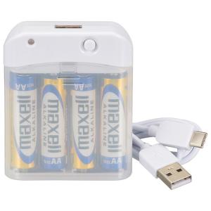 - オーム USB Type-Cケーブル付き 乾電池式充電器(ホワイト) AudioComm OHM MAV-LR03C-W 返品種別A