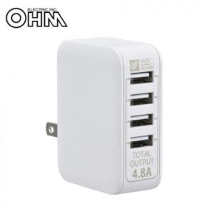 - OHM ACアダプター USB電源タップ 4ポート ホワイト MAV-AU48-W