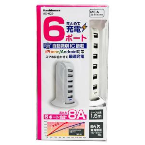- カシムラ まとめて充電6ポート AC-029 AC-6USB-8A 自動識別 ホワイト AC充電器 国内・海外対応