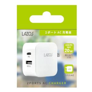 - LAZOS ラソス AC充電器 20WC PD +Aポート ホワイト L-AC-CA20(2581235)