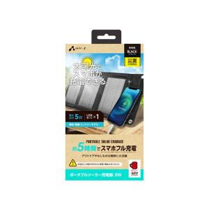 - エアージェイ(Air j) ソーラー充電器 AJ-NSOLAR7W BK 最大出力7W ブラック 防災 スマホ 充電 太陽光 アウトドア キャンプ