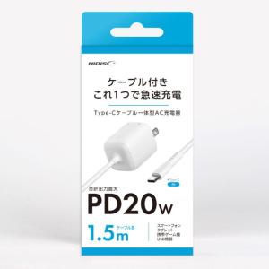 - HIDISC Type-Cケーブル一体型AC充電器 PD20Wケーブルと充電器がこれ1つに HD-AC20WC15WH