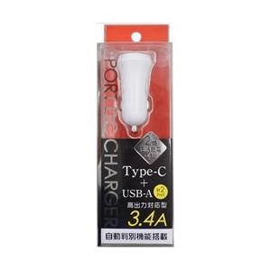 - スマートフォン/タブレット対応 [USB給電] DC - USB充電器 3.4A 2ポート(USB-A+USB-C) ホワイト BKS-DCUC34ADW 【ビックカメラグループオリジナル】