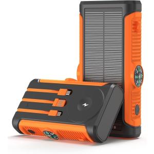 - ソーラーモバイルバッテリー 60000mAh大容量・22.5W/222Wh・6台同時充電 5way蓄電 手回し充電 耐衝撃 MDM(オレンジ)