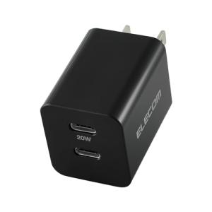 - エレコム Type-C 充電器 20W USB PD対応 2ポート USB-C ×2ポート EC-AC3520BK